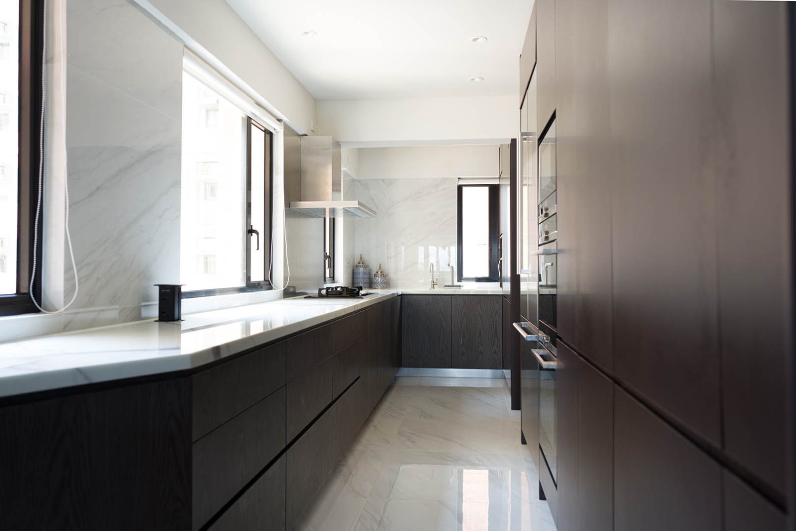 The project is located in a residence of Hong Kong middle level, with a panoramic view of the Victoria Harbour. Client is a foreign couple who hopes to create a modern, classical and sophisticated interior. The style of interior is dominated by white main color, with decorative lines and furniture to create a luxurious vibe.