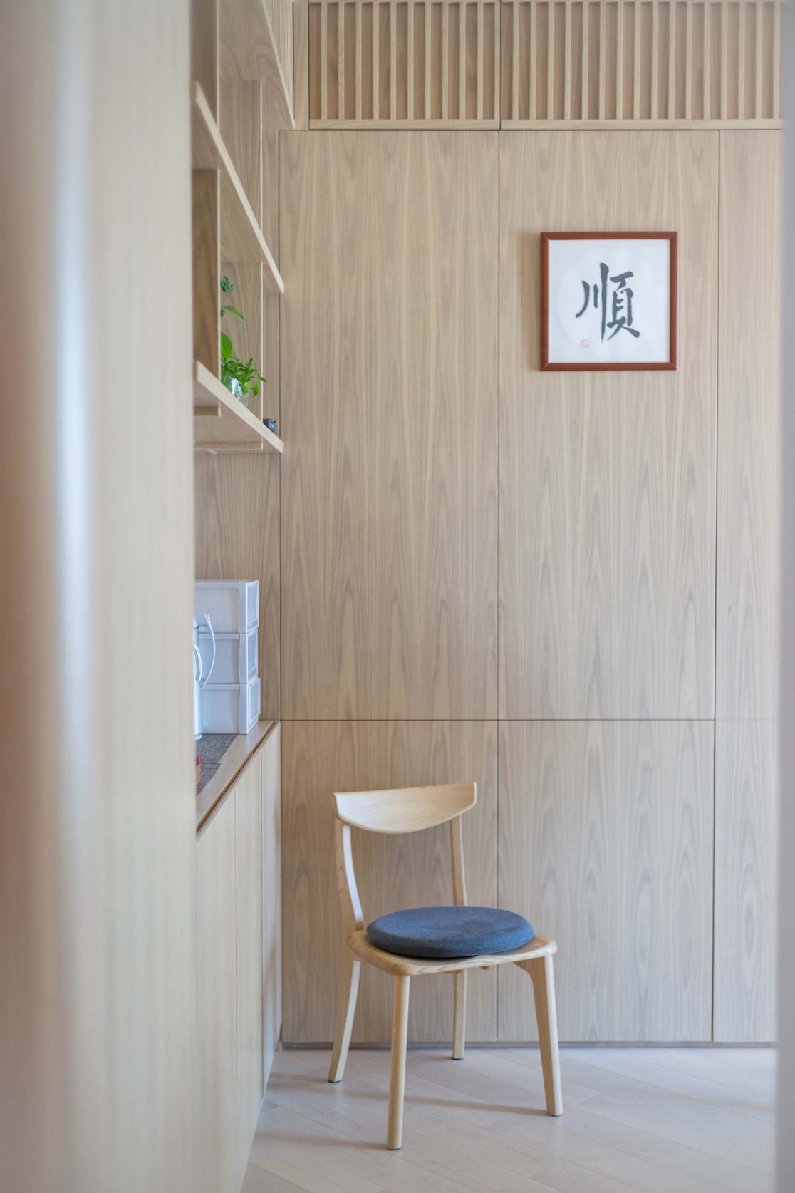 This 590 square foot residence is using the style of modern Japanese design. Located in a new development in the heart of Kwun Tong city center, the two-room apartment has been transformed into a serene and peaceful living space for a couple and their child.