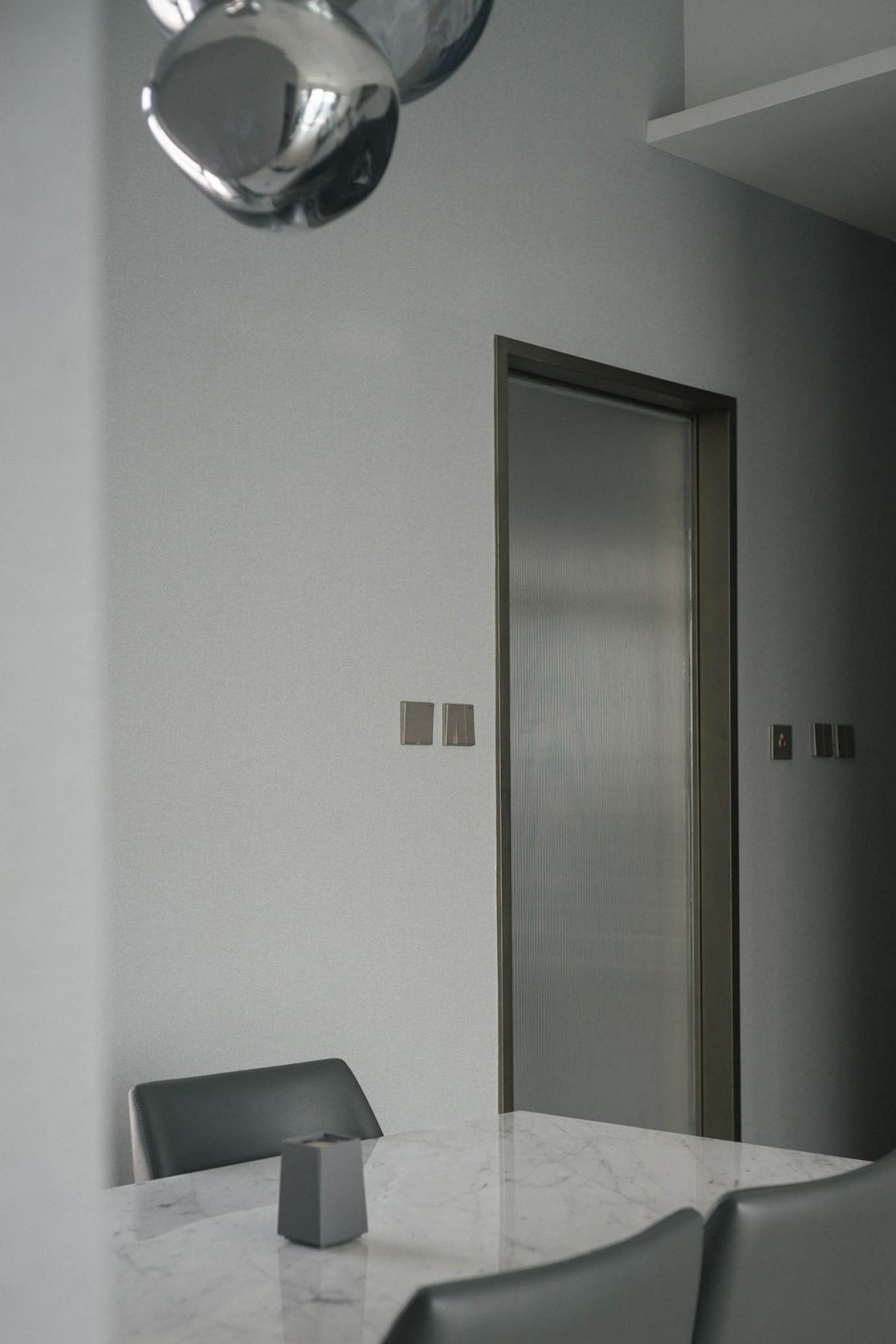 這座住宅位於荃灣寧靜的海濱屋苑,是現代奢華的縮影。 業主這對年輕夫婦想要一個既簡單又奢華的空間,創造一個舒適、寧靜的環境。 客廳採用方形設計,設有高櫃,可放置日常用品和裝飾品。 沙發和電視牆採用大型獨特的大理石設計,為空間增添了自然和奢華的感覺。 用餐區配有大理石桌子,與客廳的設計相得益彰。 家裡的兩個房間被用作書房,滿足了在家工作日益增長的需求。 男書房採用黑木色和灰色的設計,女書房則採用淺色和金屬元素,營造出女性化和優雅的感覺。 主臥室採用壁紙設計,配有特殊的牆壁、隱藏式門以及套間和步入式衣櫃的金屬門框。 選材經過精心挑選,營造出低調奢華的感覺。 起居和用餐區採用灰色壁紙、木地板、金色金屬裝飾和灰白色窗簾,營造出精緻的氛圍。 浴室採用獨特的大理石元素,與客廳設計相得益彰。 廚房採用簡單的線框設計,為整體灰色配色方案增添了一絲細節。